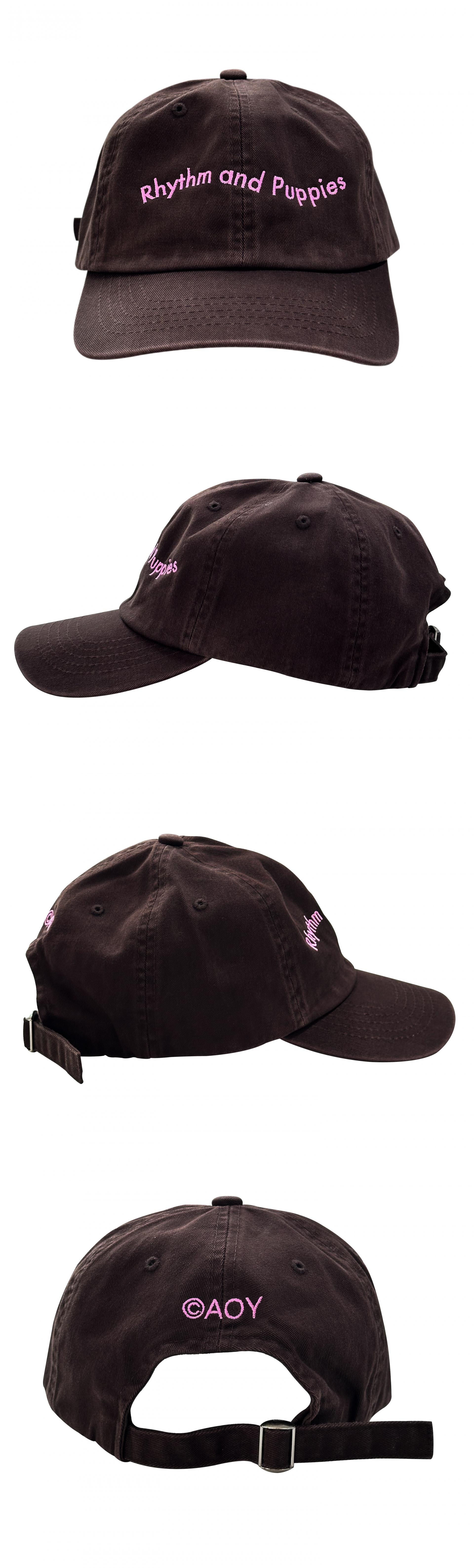 - 핑크색 RHYTHM AND PUPPIES 자수의 브라운 컬러 바이오 워싱 볼캡